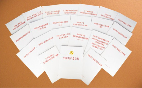 习近平总书记强调,“我国社会主义政治制度优越性的一个突出特点是党总揽全局、协调各方的领导核心作用,形象地说是‘众星捧月’,这个‘月’就是中国共产党”。图为党的十八大以来,制定和修订的部分重要党内法规制度。
