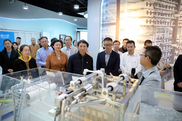 赵小云、许云、李伟、安雪晖一行首先来到北京碧水源科技股份有限公司展厅参观调研。北京碧水源科技股份有限公司创办于2001 年,作为中关村国家自主创新示范区高新技术企业,这是一家集膜材料研发、膜设备制造、膜工艺应用于一体的高科技环保企业,是全球一流的膜设备生产制造商和供应商之一。区政协委员、北京碧水源科技股份有限公司总工程师、首席科学家俞开昌向大家介绍了碧水源自主研发的多项科技成果。座谈会上,北京碧水源科技股份有限公司董事长、总裁黄江龙介绍了公司改革发展、业务布局、团队管理、技术创新等整体情况。