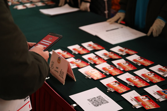 进入会场后,委员扫码签到、领取会议资料、递交提案,一切井然有序。