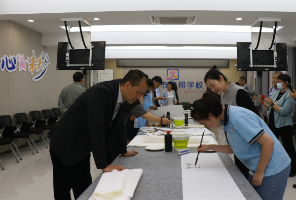 9月27日,海淀政协书画院组织书画家走进北京市健翔学校参观交流,并举办笔会和捐赠活动,为学校里的特殊儿童送上关爱。区政协副主席许云和部分政协委员参加活动。