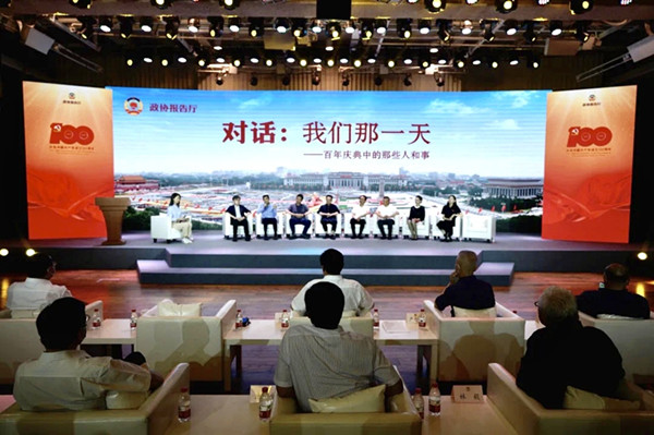 7月16日,北京市政协在歌华大厦举办政协报告厅:“对话:我们那一天——百年庆典中的那些人和事”。活动邀请了中国共产党成立100周年庆祝大会和《伟大征程》文艺演出部分主创、演职人员回顾和分享镜头背后的精彩故事,并与政协委员面对面交流,大家一同重温经典与感动,汲取党的盛典激发出的强大正能量。海淀区政协副秘书长、委员工作室主任刘玲和海淀区政协委员马芙蓉、姚炜、芮玉奎、白洁、余红卫、沈腾参加了活动。戴文胜委员组织参加7月1日盛典当天献词团和合唱团的、来自北京交大附中的部分模拟政协师生代表,孙菽艺委员组织航天五院参加模拟政协的研究生代表,也参加了活动。