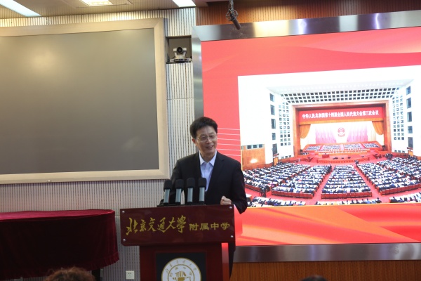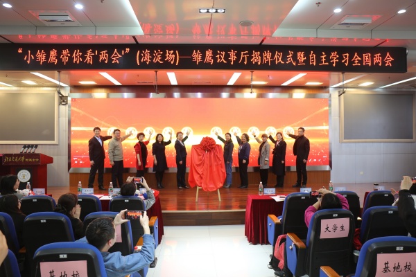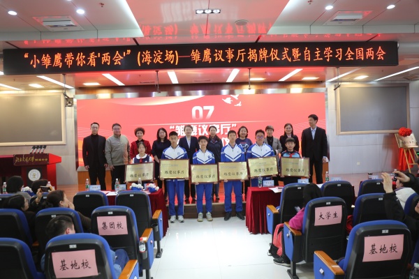 3月10日,全国政协十四届三次会议闭幕的当天,模拟政协校之一、北京交通大学附属中学教育集团举办了雏鹰议事厅揭牌仪式暨自主学习2025年全国两会精神活动。区政协副主席王伟丽,市教科院、区教委等相关单位领导,部分全国、北京市、海淀区政协委员,以及交大附中师生代表百余人参加活动。