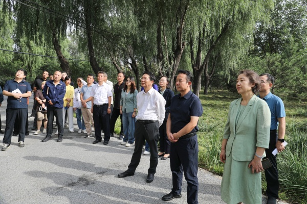 随后,调研组来到石渠公园,公园位于玉泉山西北部,是“三山五园——园外园”范围,“园外园一道十三园”之一。场地内原有引水石渠,是清乾隆二十四年(1759年)在京西北郊建设完成的人工水利工程。这座公园在精心设计和养护下,目前正呈现出最美的景观状态,给游客带来别样的秋色体验。也让越来越多的居民在城市慢行系统中拥抱绿色出行,乐享慢生活的悠然韵味。